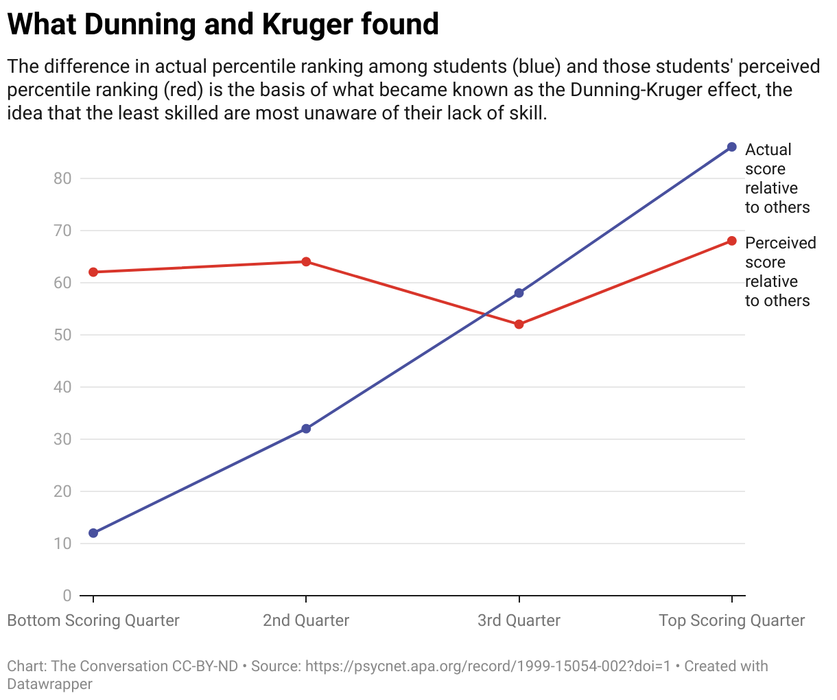 The core idea behind this cognitive bias is that less competent people are ignorant of how incompetent they are. Eric C. Gaze, a Senior Lecturer in the Mathematics Department at Bowdoin College and Chair of the Baldwin Center for Learning and Teaching, and his team recently revisited the study conducted by Dunning and Kruger.